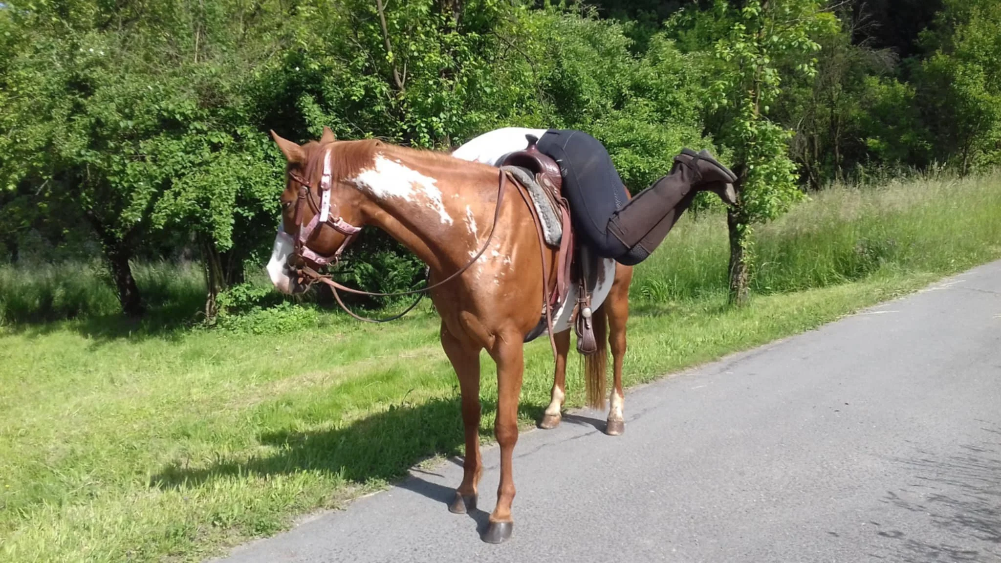 Before that ride, quick arm swings would startle the mare, likely due to how her previous trainer sped up certain moves. It was a late summer afternoon, and horse flies were annoying along the trail. I saw two flies on Star’s face and, forgetting for a moment which horse I was riding, I tried to swat them away. She jumped forward, confused, then stopped suddenly, as if trying to understand what happened. It felt like something clicked in her mind, and from then on, unusual movements from me were finally okay.